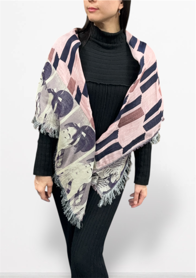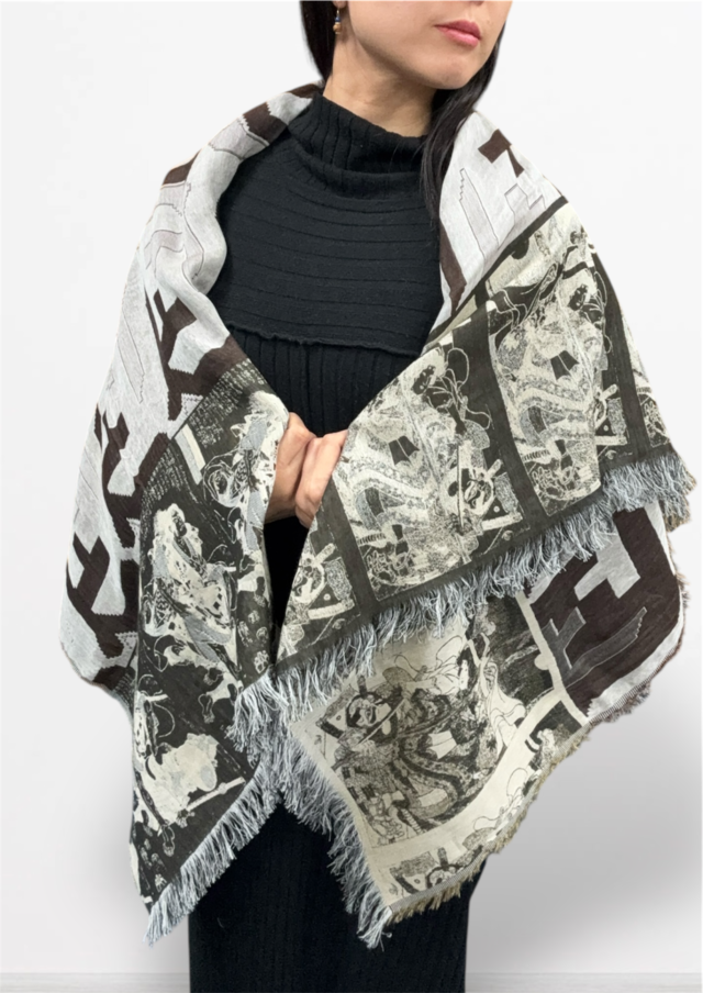 浮世絵ショール♡ 秋冬大活躍ふわふわ綿100% 対角線上に折り肩からかけてショールとして、首に巻いてストールとして♪ ブランケットおしてもお使いいただけます^_^ 両端は柄がしっかり映えるように織り、中央部分は肌に優しく、あたたかく柔らかな風合いに仕上げています☆☆ 《ストールの特徴》 ○肌触りがとても良く、肌が弱い方でも安心して着けて頂けます。 ○通気性、保湿性に優れているので一年中お使いになれます。 ○自宅で洗濯して頂けるので衛生的です。 ○先に糸を染めてから織っているので、複雑な柄もプリントではなく織って出しています。 ○軽いので巻くのはもちろん、持ち歩く時も負担が少ないです。 《商品仕様》 素材 :cotton 100% サイズ:約120㎝×120㎝ 原産地:日本 西脇市 《播州織りとは》 200年以上の歴史を誇る、兵庫県のほぼ中央に位置する北播磨【きたはりま】の、美しく豊かな土風に生まれた先染めによる綿織物。 《先染織物とは》 糸の段階でいろいろな色に染め、その糸から織り上げた織物です。水がとても綺麗だからこそ出来ます。 《織馬鹿とは?》 播州織りは、糸を染める、糸を整える、柄を作る、糸を織る、と言う工程を通ります。その各分野の熱い気持ちを持った職人達で結成されたチーム。それが織馬鹿です! 《私と播州織り》 兵庫県西脇市、播州織りの工場で育った私。小さい頃沢山あった織物の工場ですが、今では30分の1以下になってしまいました。 どうにかして立ち上がらなければいけないと言う強い気持ちで【織馬鹿】と言うブランドを立ち上げました。 本物を知って頂きたい。一つ一つ職人が気持ちを込めて作っております。一人でも多くの方々に、播州織りのストールを知って頂けるように、伝えて行きたいと思っています。 ●お洗濯の際は、手洗いをして頂き陰干しで乾燥をして頂きますようお願い致します。 (柔らかく仕上げる際は、柔軟剤を使用して下さい) ●細い糸を使用していますので、糸が引っかかる場合が御座います。 *光のあたり方などで、写真と実物に少し違いがあるかもしれません。ご了承くださいませ。 Ukiyo-e Shawl♡ Perfect for fall and winter! Fluffy 100% cotton. Fold it diagonally and drape it over your shoulders as a shawl, or wrap it around your neck as a stole. ♪ Can also be used as a blanket. ^_^ The ends are woven to highlight the pattern, while the center is gentle on the skin, creating a warm, soft texture. ☆☆ 《Stole Features》 ○ It feels very soft against the skin, even for those with sensitive skin. ○ Its excellent breathability and moisture retention make it suitable for year-round wear. ○ It can be washed at home for hygiene. ○ The yarn is dyed before weaving, so even intricate patterns are woven, not printed. ○ It's lightweight, so it's easy to wrap around your body and carry around with ease. Product Specifications Material: 100% Cotton Size: Approximately 120cm x 120cm Country of Origin: Nishiwaki City, Japan About Banshu Weaving Boasting a history of over 200 years, Banshu Weaving is a pre-dyed cotton fabric born from the beautiful, fertile soil of Kitaharima, located almost in the center of Hyogo Prefecture. About Pre-Dyed Fabrics The yarn is dyed in various colors and then woven from those yarns. This is possible only because the water is so clean. About Oribaka Banshu weaving involves the steps of dyeing the yarn, straightening the yarn, creating the pattern, and weaving the yarn. Oribaka is a team of passionate artisans from each of these fields. About Me and Banshu Weaving I grew up in a Banshu weaving factory in Nishiwaki City, Hyogo Prefecture. There were many textile factories when I was a child, but now there are less than one-thirtieth of that number. With a strong sense of urgency to get back on its feet, we launched the "Ori Baka" brand. We want people to know the real thing. Each and every one is crafted with care by our artisans. We hope to spread the word and help as many people as possible discover Banshu-woven shawls. ●When washing, please hand wash and dry in the shade. (For a softer finish, use fabric softener.) ●Since thin threads are used, the threads may catch. *There may be slight differences between the photo and the actual product due to lighting conditions, etc. Thank you for your understanding.