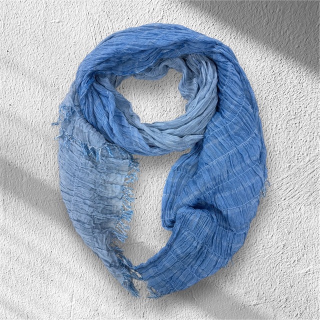 やさしい肌ざわりの綿100%ストールは 春・秋・冬の軽羽織としても活躍する万能アイテム。 伸縮性のある糸で横方向にギャザーを入れることで、ふんわりとした立体感と伸びのある快適なつけ心地を実現しました。 【おすすめポイント】 •綿素材で肌にやさしい:チクチクせず、敏感肌の方にも安心 •伸縮糸使用:自然なシワ感でお洗濯後もノーアイロン •大判サイズ:巻く・羽織る・掛ける、自由自在のアレンジ力 •軽量&コンパクト:バッグに入れて持ち歩きもOK 普段使いから旅行・冷房対策まで幅広く使え、季節の変わり目にもぴったり。 ナチュラルな風合いと機能性を兼ね備えたストールで、毎日のコーデにやさしさと彩りを♪ 《ストールの特徴》 ○肌触りがとても良く、肌が弱い方でも安心して着けていただけます。 ○通気性、保湿性に優れているので一年中お使いになれます。 ○自宅で洗濯して頂けるので衛生的です。 ○先に糸を染めてから織る播州織です。 ○軽いので巻くのはもちろん、持ち歩く時も負担が少ないです。 《商品仕様》 素材 :綿98%.ポリウレタン2% サイズ:約70㎝×180㎝(シャーリングにより、サイズが前後します。) 原産地:日本 《播州織りとは》 200年以上の歴史を誇る、兵庫県のほぼ中央に位置する北播磨【きたはりま】の、美しく豊かな土風に生まれた先染めによる綿織物。 《先染織物とは》 糸の段階でいろいろな色に染め、その糸から織り上げた織物です。水がとても綺麗だからこそ出来ます。 《織馬鹿とは》 織馬鹿は、織物職人と紋紙職人で結成されており、ジャガード織を基調とする、色と風合いにこだわりを持ち、皆様に喜んで頂ける物づくりに妥協をせず邁進しております。 《私と播州織り》 兵庫県西脇市、播州織りの工場でも育った私。小さい頃沢山あった織物の工場。今では最盛期の 30分の1以下になっています。 どうにかして立ち上がらなければいけないと言う強い気持ちで【織馬鹿】と言うブランドが作られました。 本物を知って頂きたい。一つ一つ職人が気持ちを込めて作っております。一人でも多くの方々に、播州織りのストールを知って頂けるように、伝えて行きたいと思っています。 ●お洗濯の際は、手洗いをして頂き陰干しで乾燥をして頂きますようお願い致します。 (柔らかく仕上げる際は、柔軟剤を使用して下さい) ●細い糸を使用していますので、糸が引っかかる場合が御座います。 ●プレゼント包装はプレゼント包装を選択ください☆ (価格により送料がかかります)