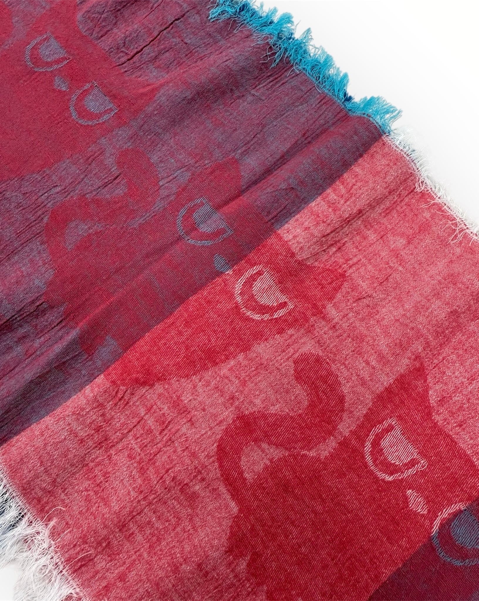 糸の段階でいろいろな色に染め、その糸から織り上げた織物です。