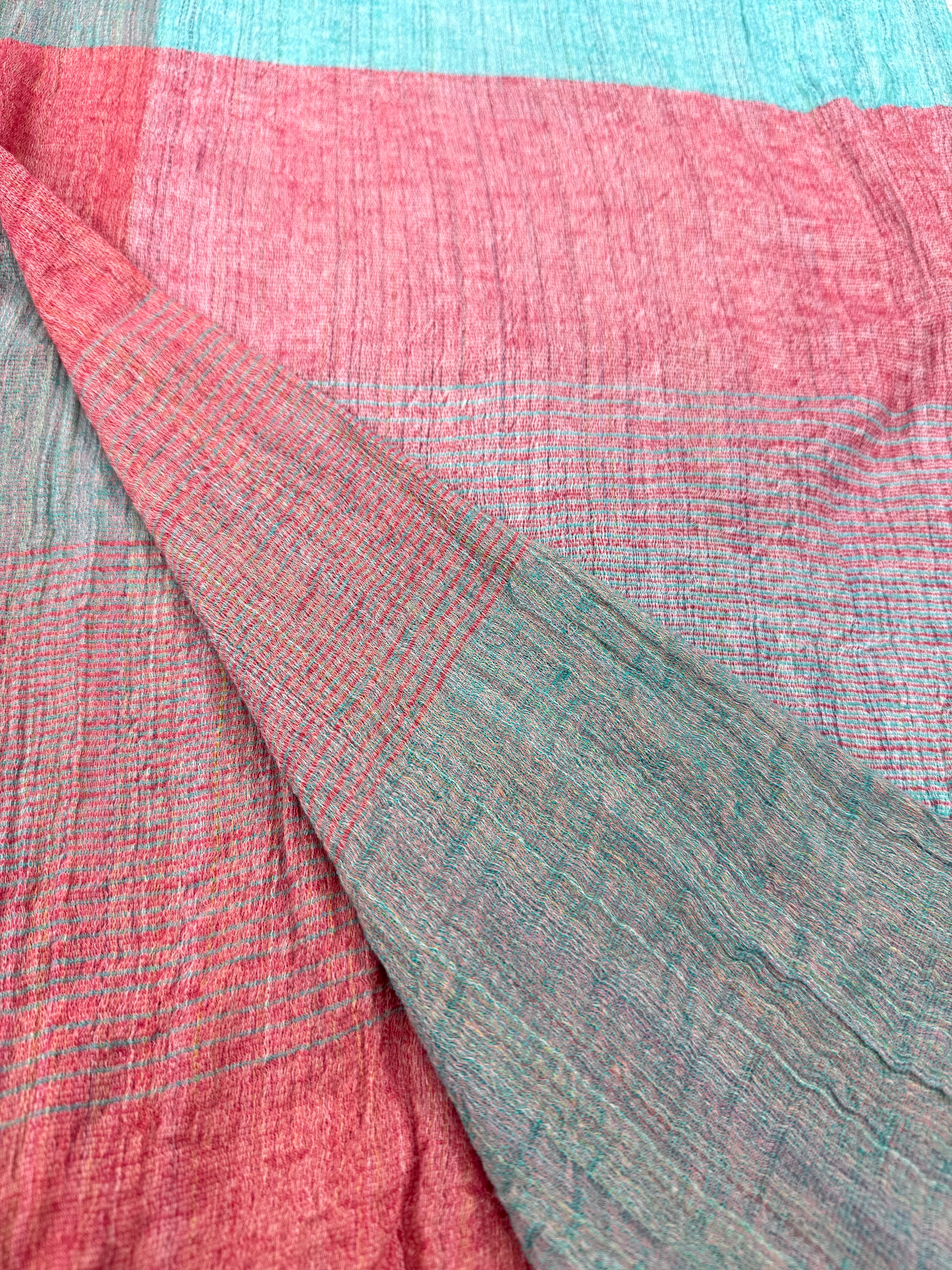 糸の段階でいろいろな色に染め、その糸から織り上げた織物です。