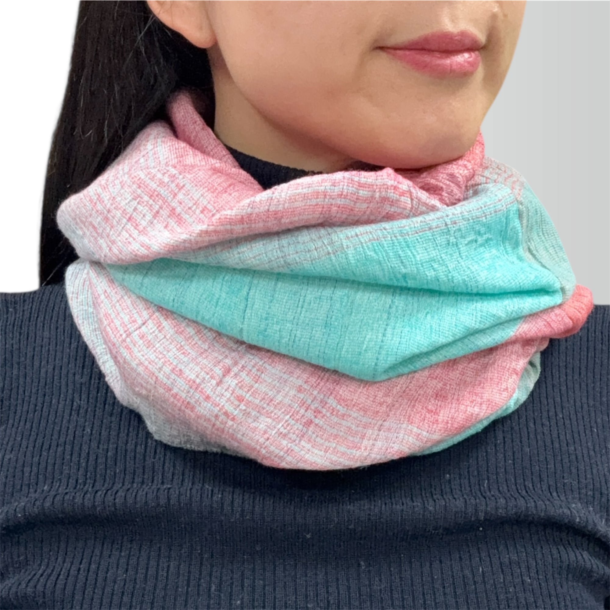 筒状になっているので、首からかぶるだけで首あったかスヌードに♪首に一巻きしてストールや肩から掛けてショールにもなります^ ^
