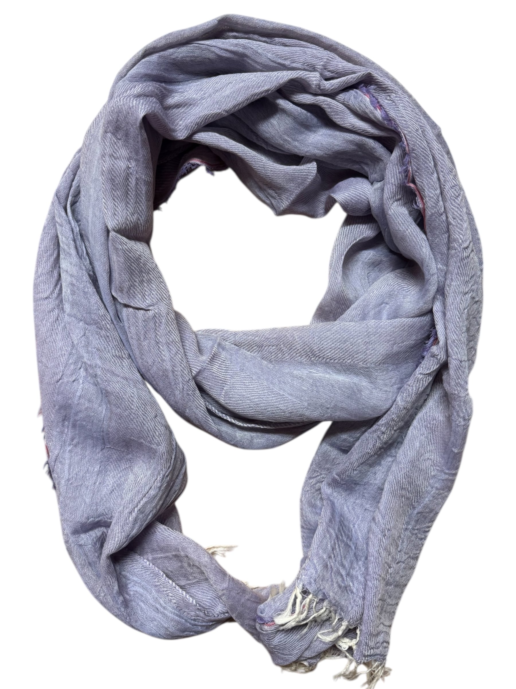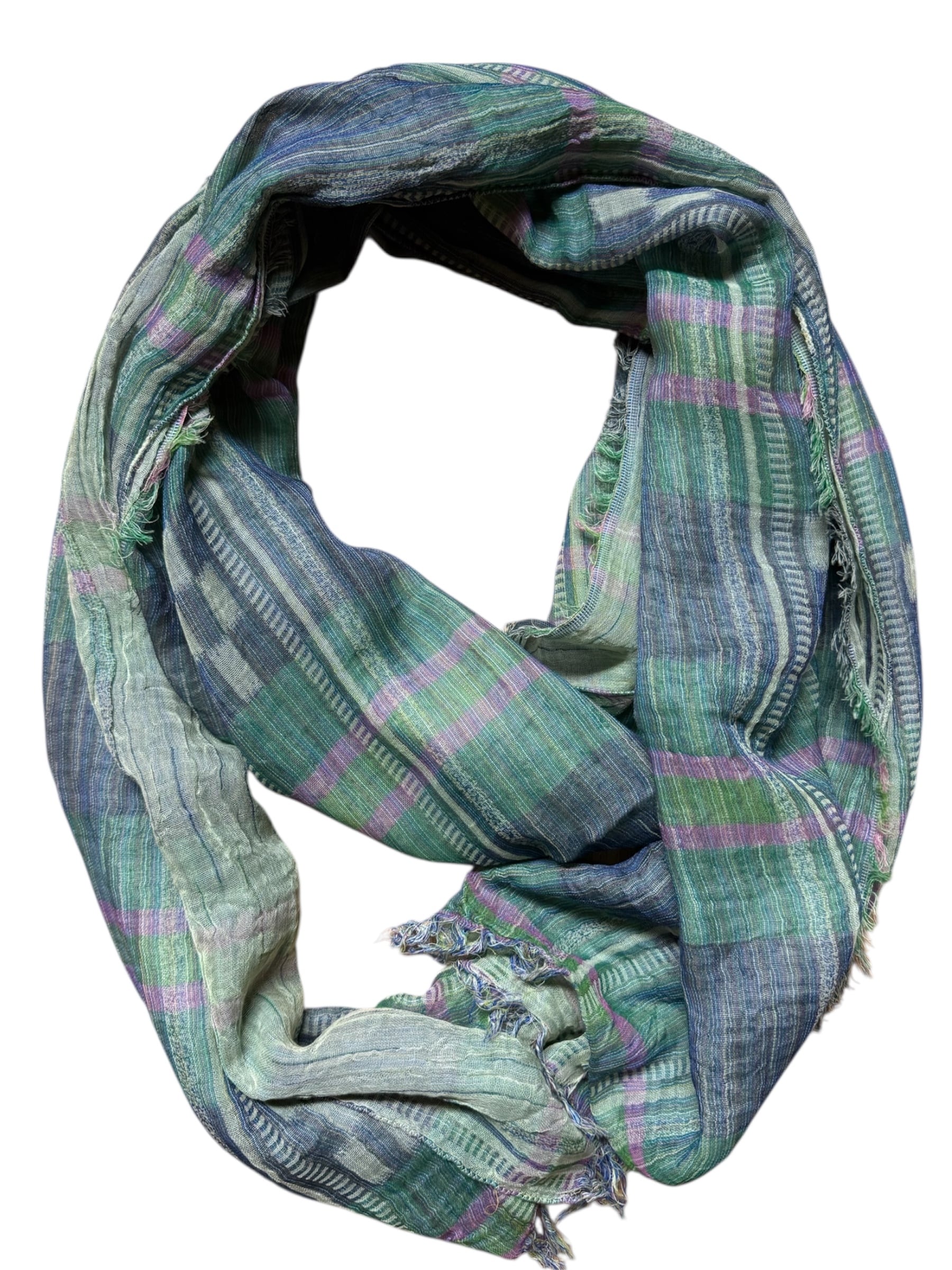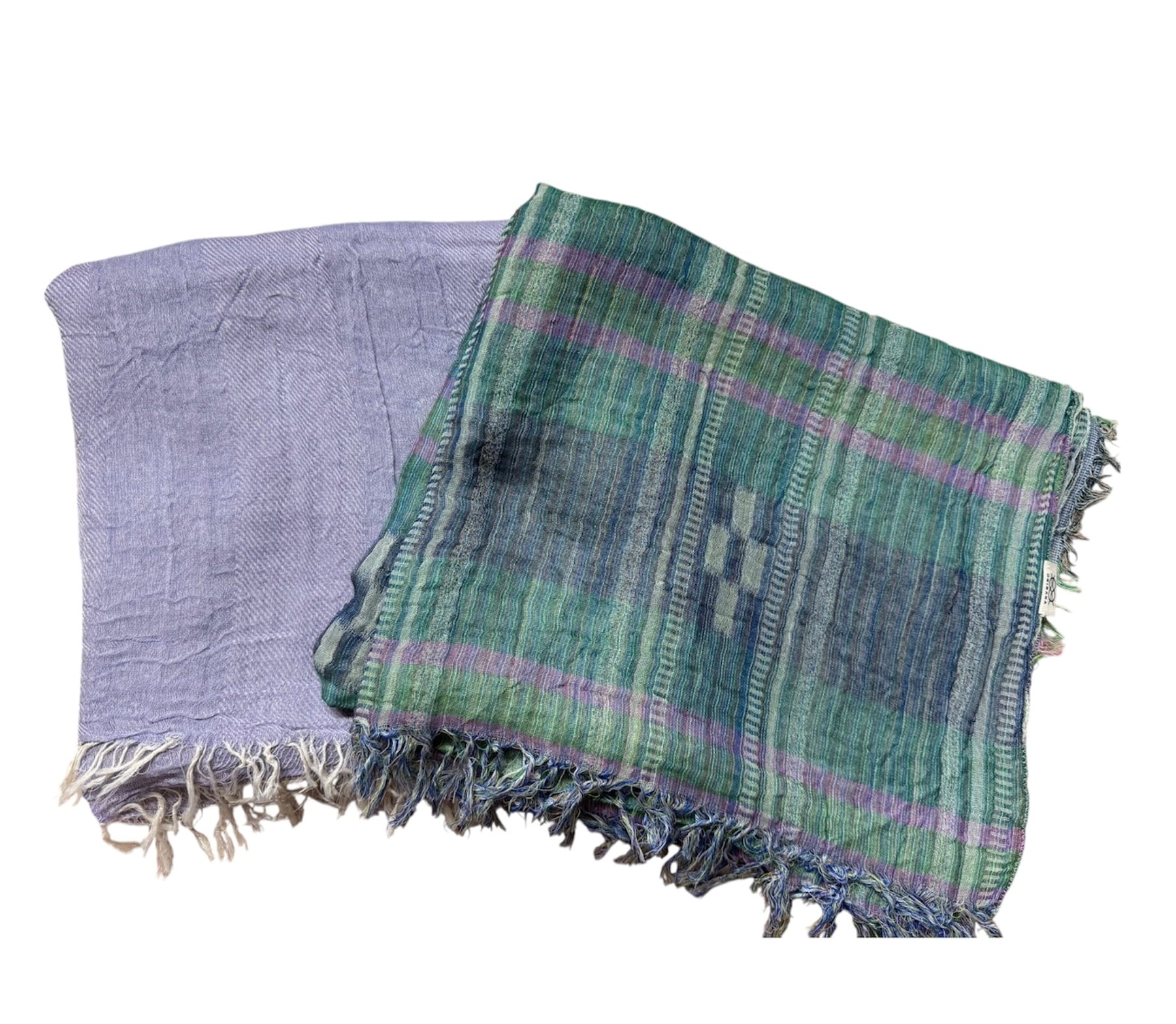 糸の段階でいろいろな色に染め、その糸から織り上げた織物です。水がとても綺麗だからこそ出来ます。