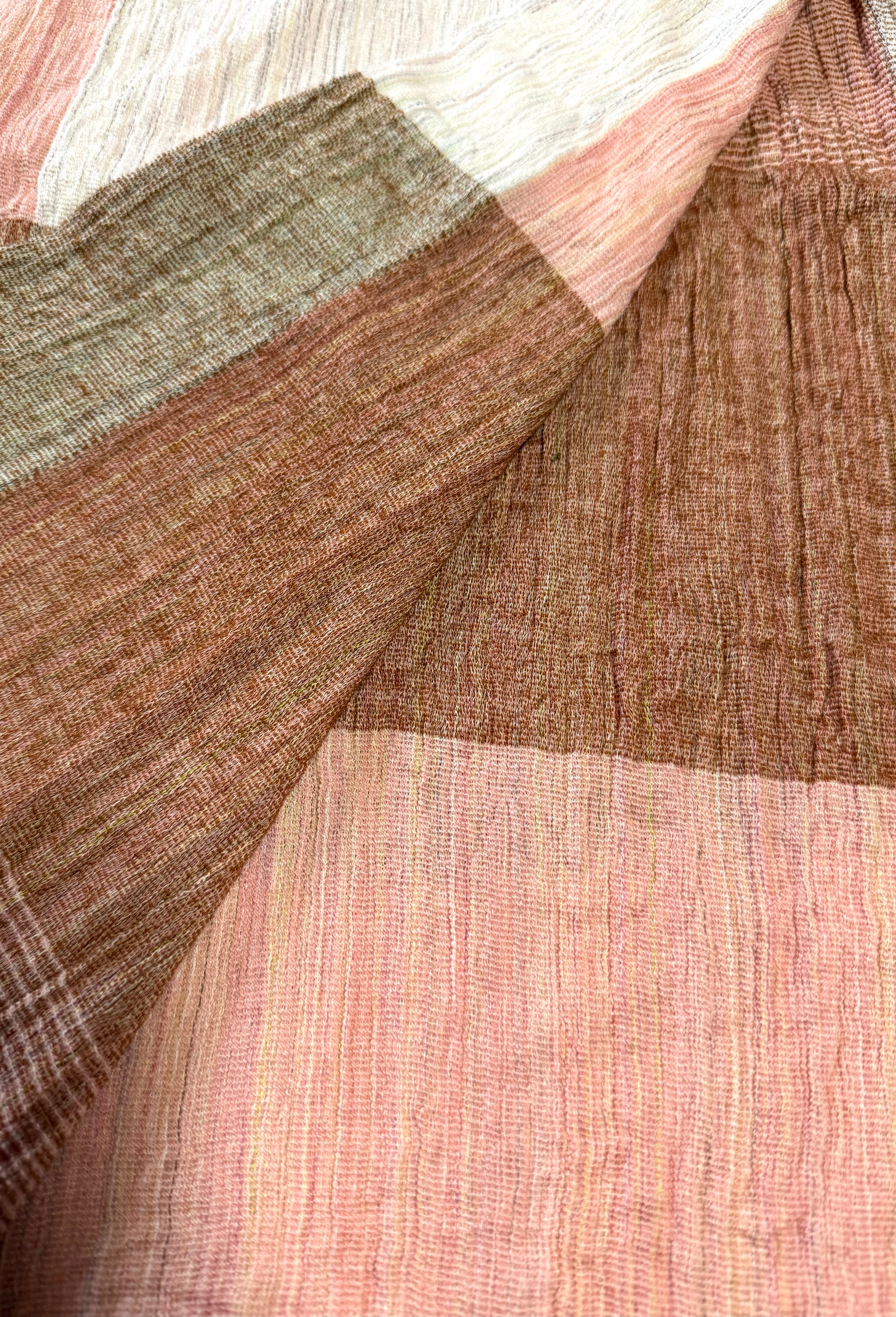 糸の段階でいろいろな色に染め、その糸から織り上げた織物です。
