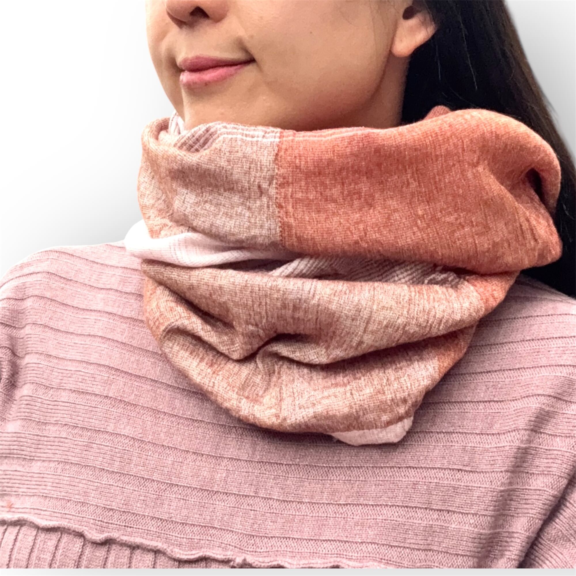 筒状になっているので、首からかぶるだけで首あったかスヌードに♪首に一巻きしてストールや肩から掛けてショールにもなります^ ^