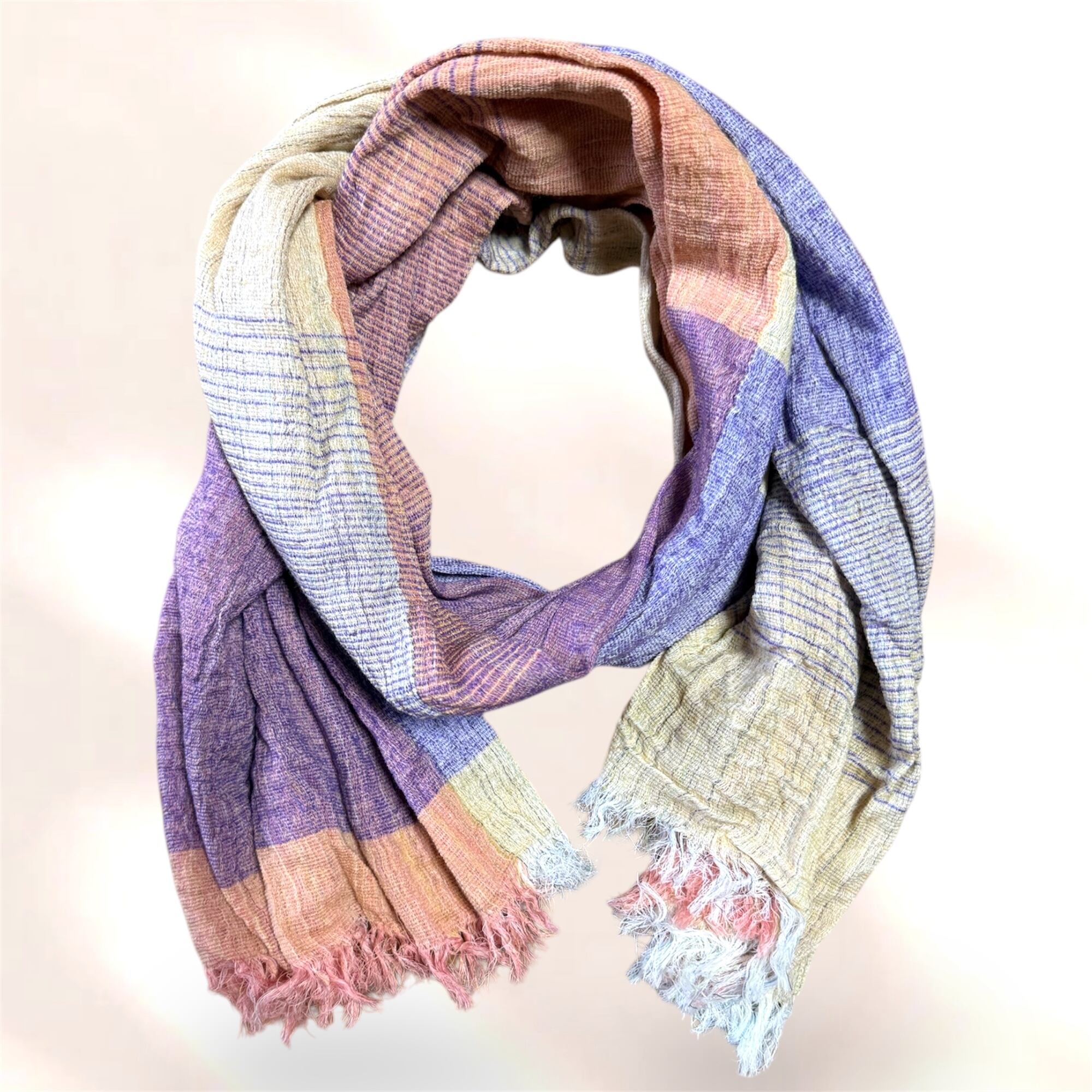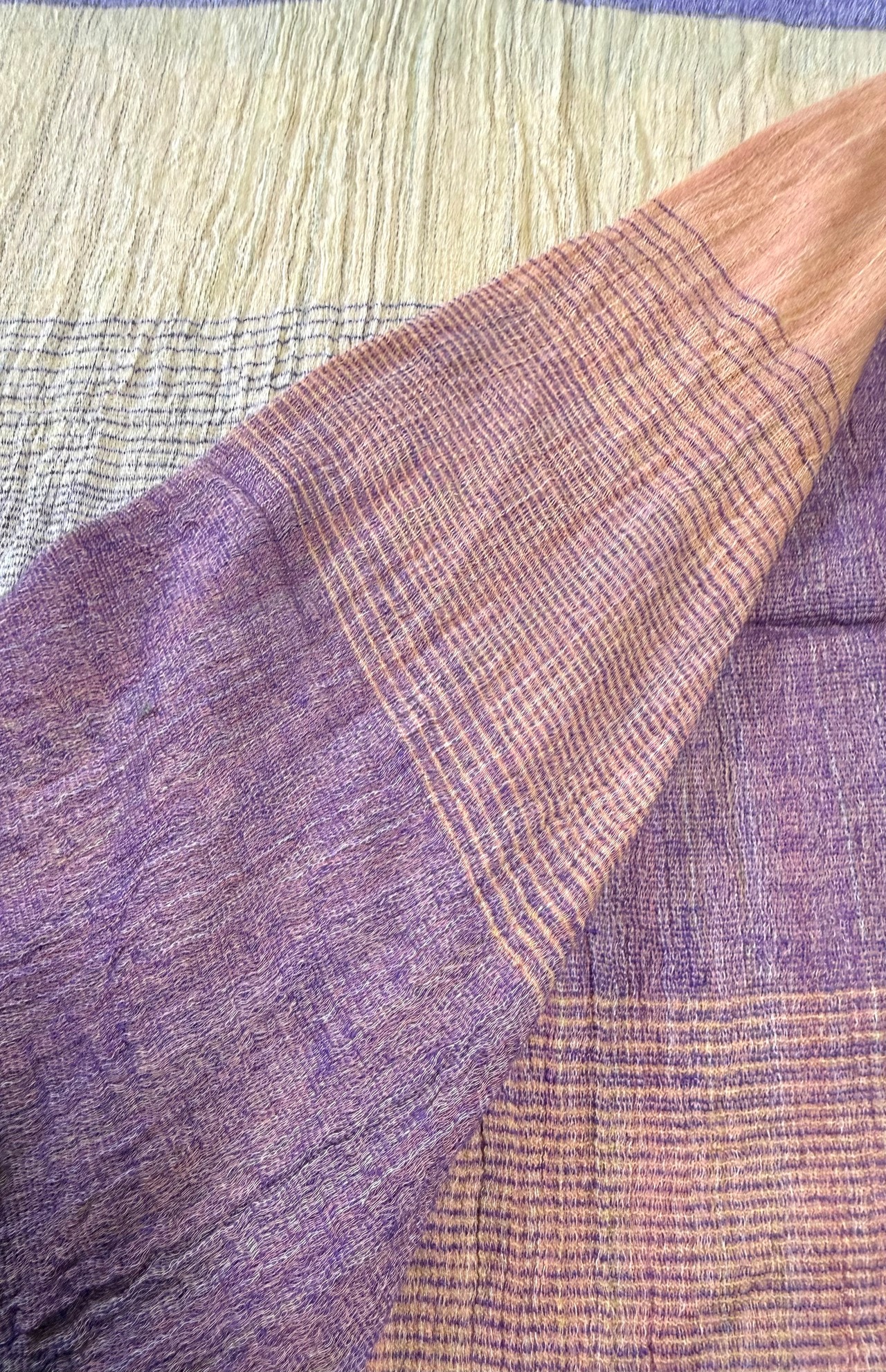 糸の段階でいろいろな色に染め、その糸から織り上げた織物です。