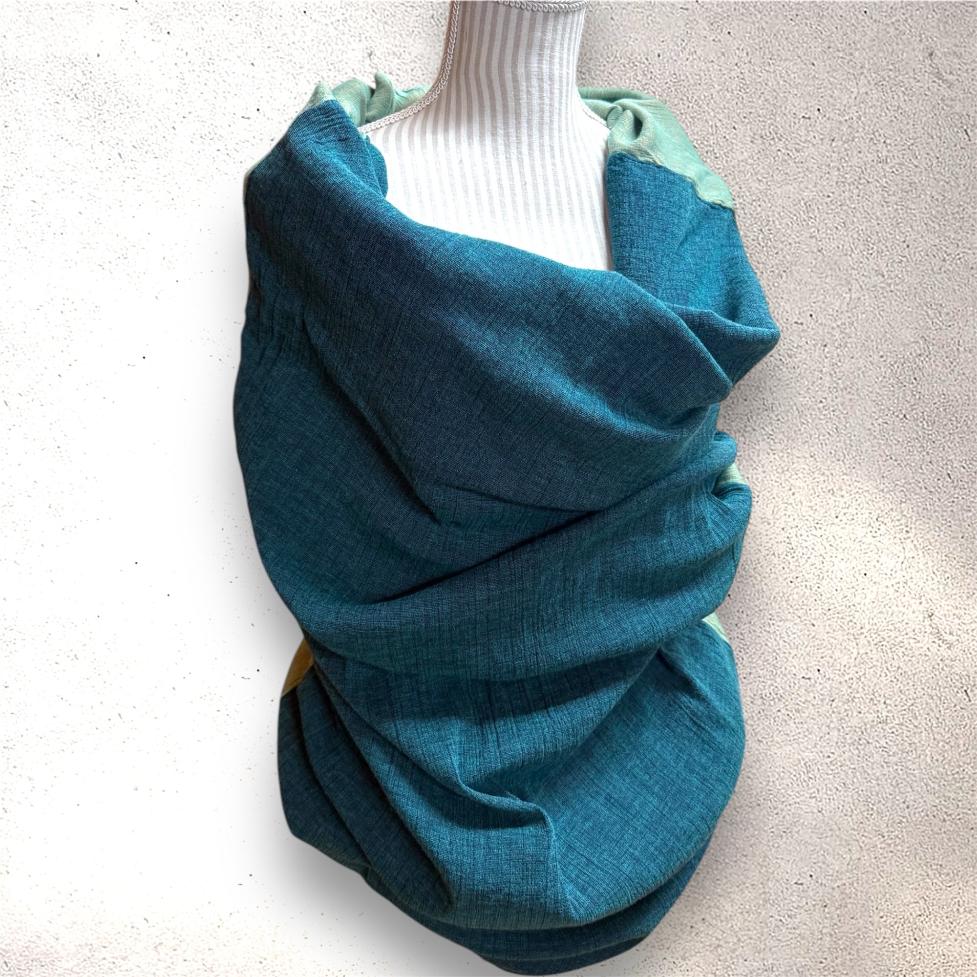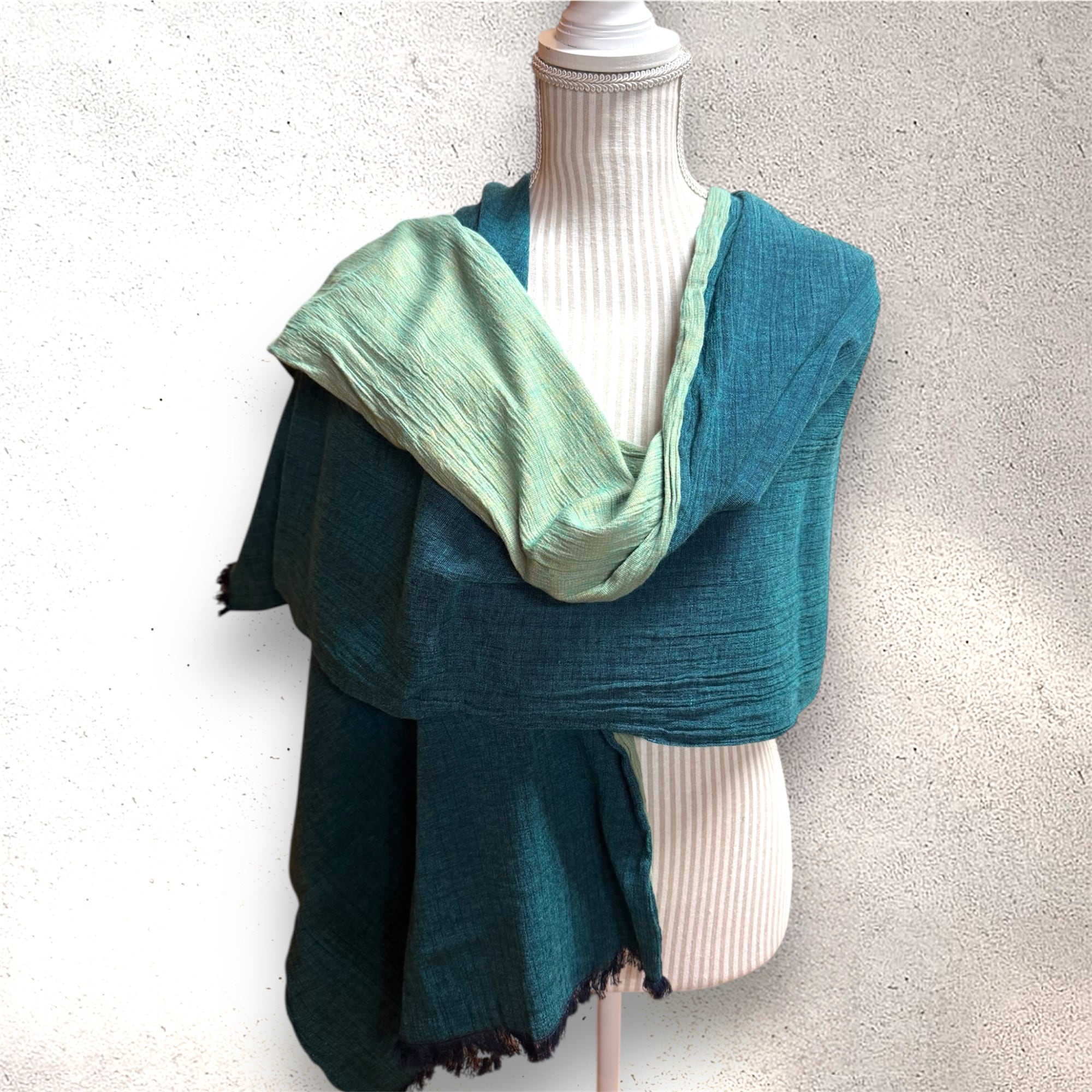 首元、肩、全身へと形を変える、暮らしに寄り添う一枚です。