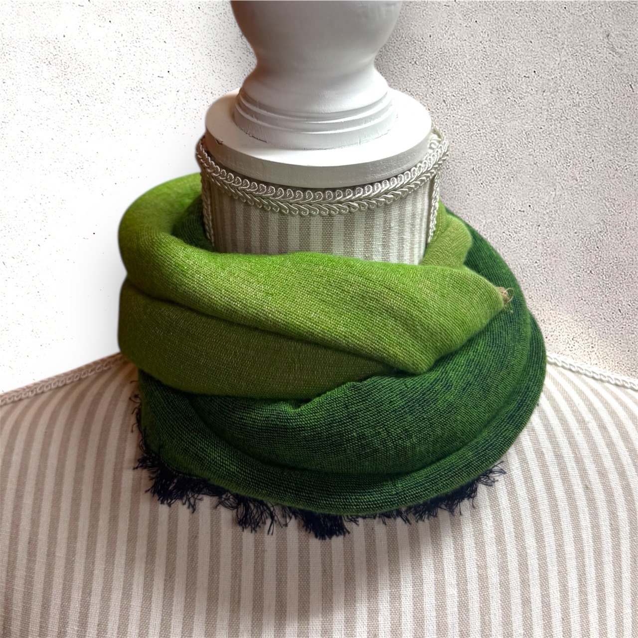 糸の段階でいろいろな色に染め、その糸から織り上げた織物です。