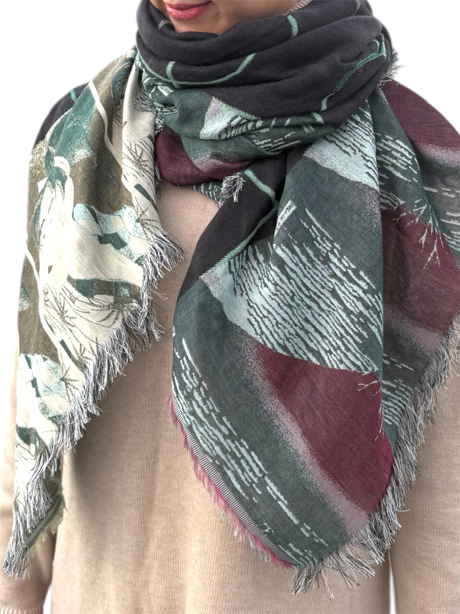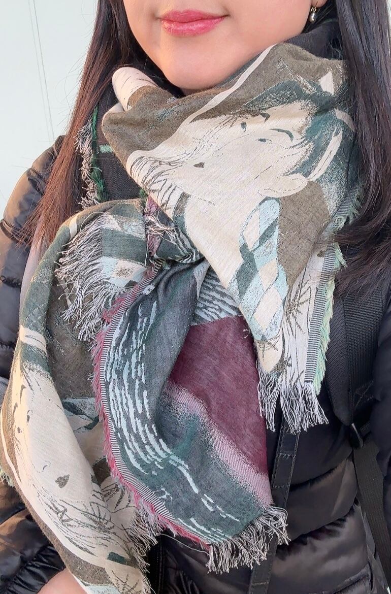 Fold it diagonally and drape it over your shoulders as a shawl, or wrap it around your neck as a stole. ♪