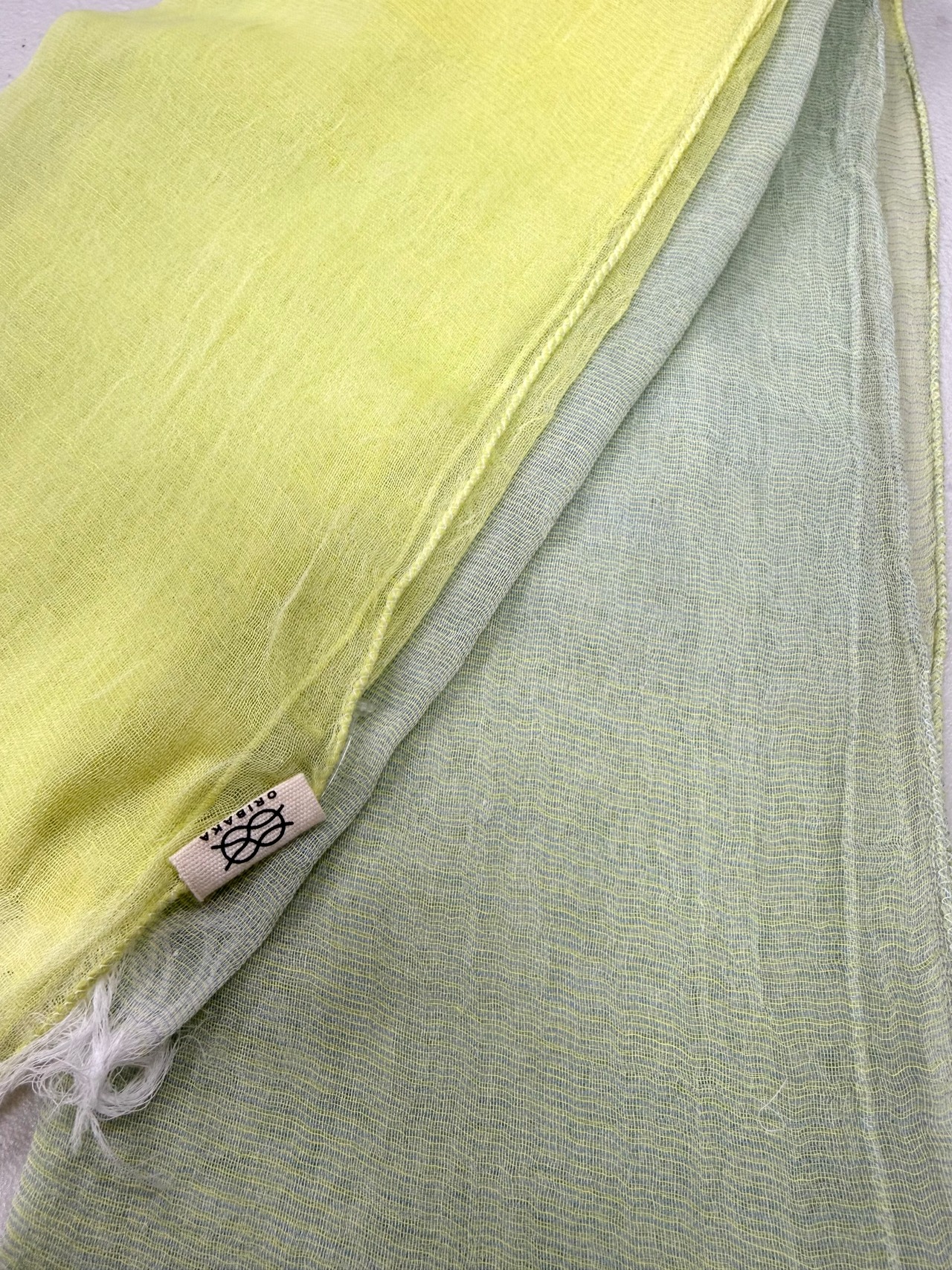糸の段階でいろいろな色に染め、その糸から織り上げた織物です。水がとても綺麗だからこそ出来ます。