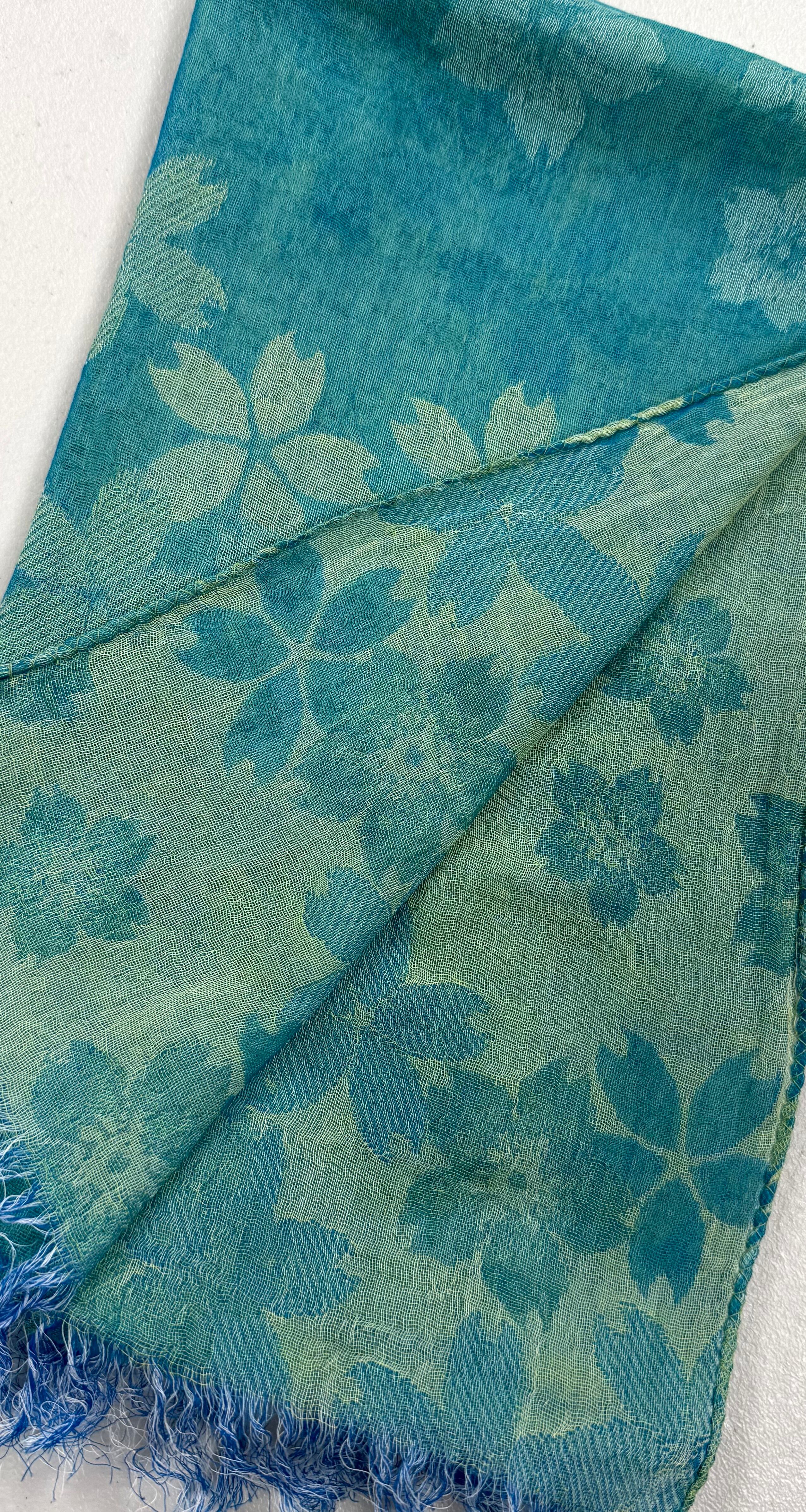 糸の段階でいろいろな色に染め、その糸から織り上げた織物です。水がとても綺麗だからこそ出来ます。