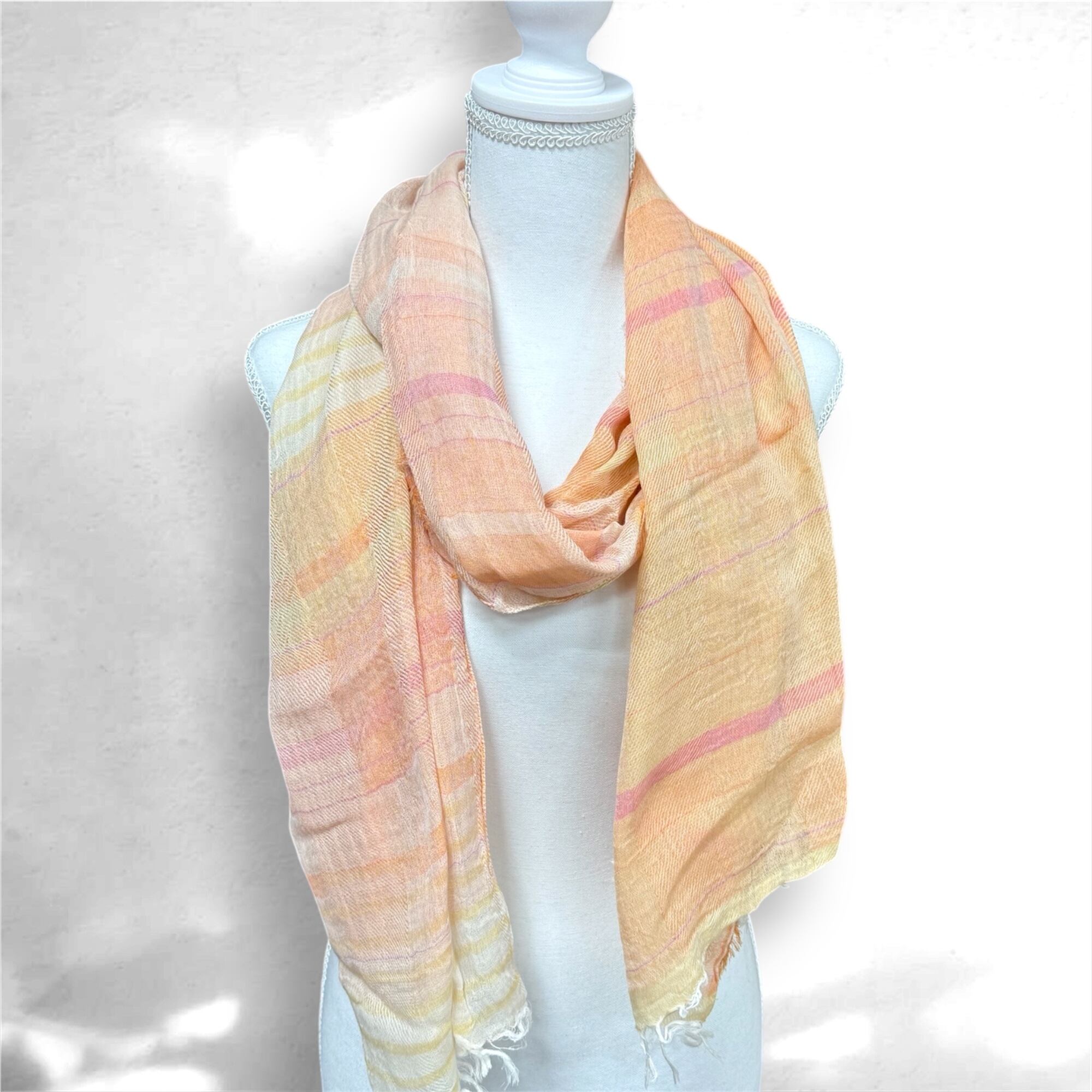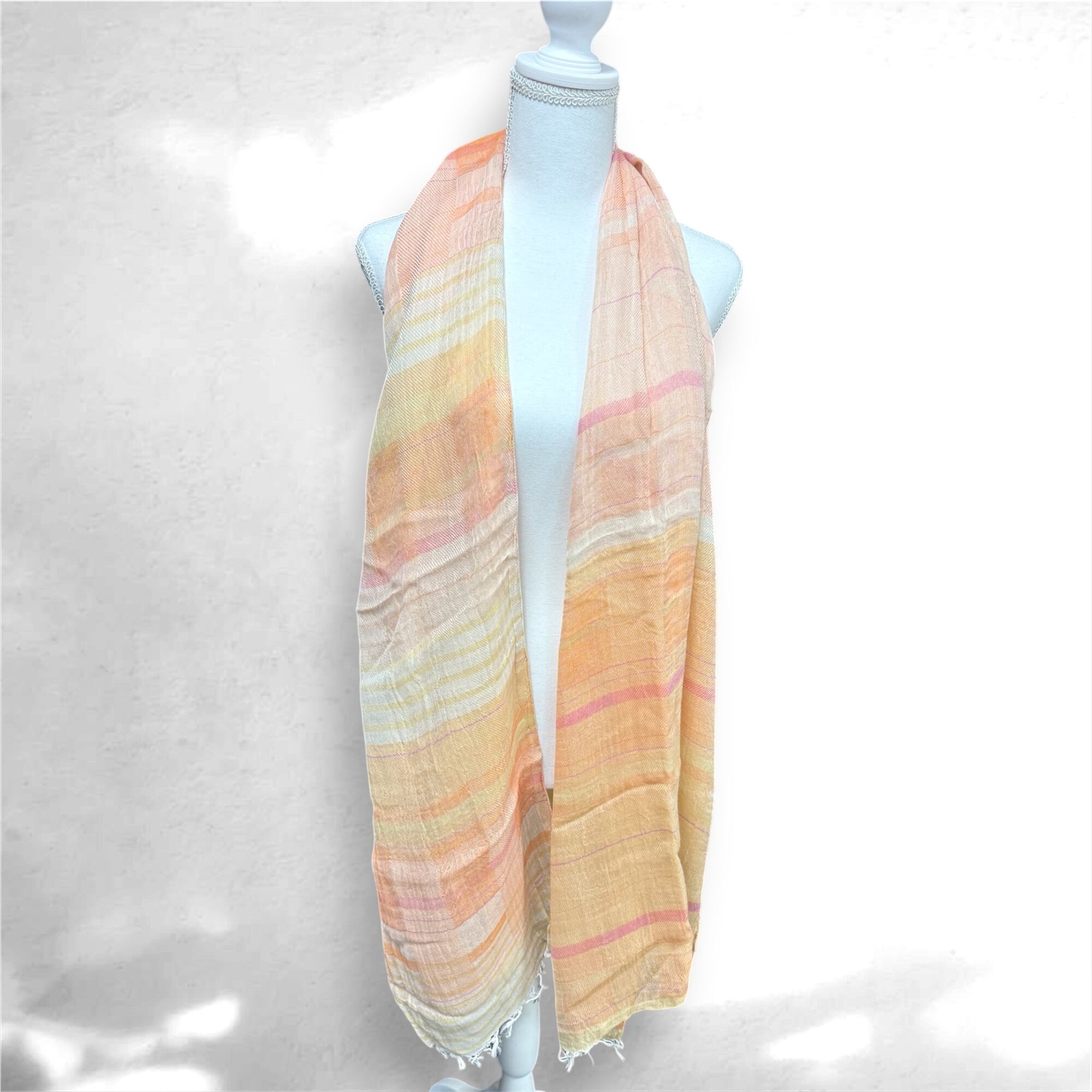 首に巻いたり、肩から掛けたりとアレンジのしやすい綿100%ストール♪
