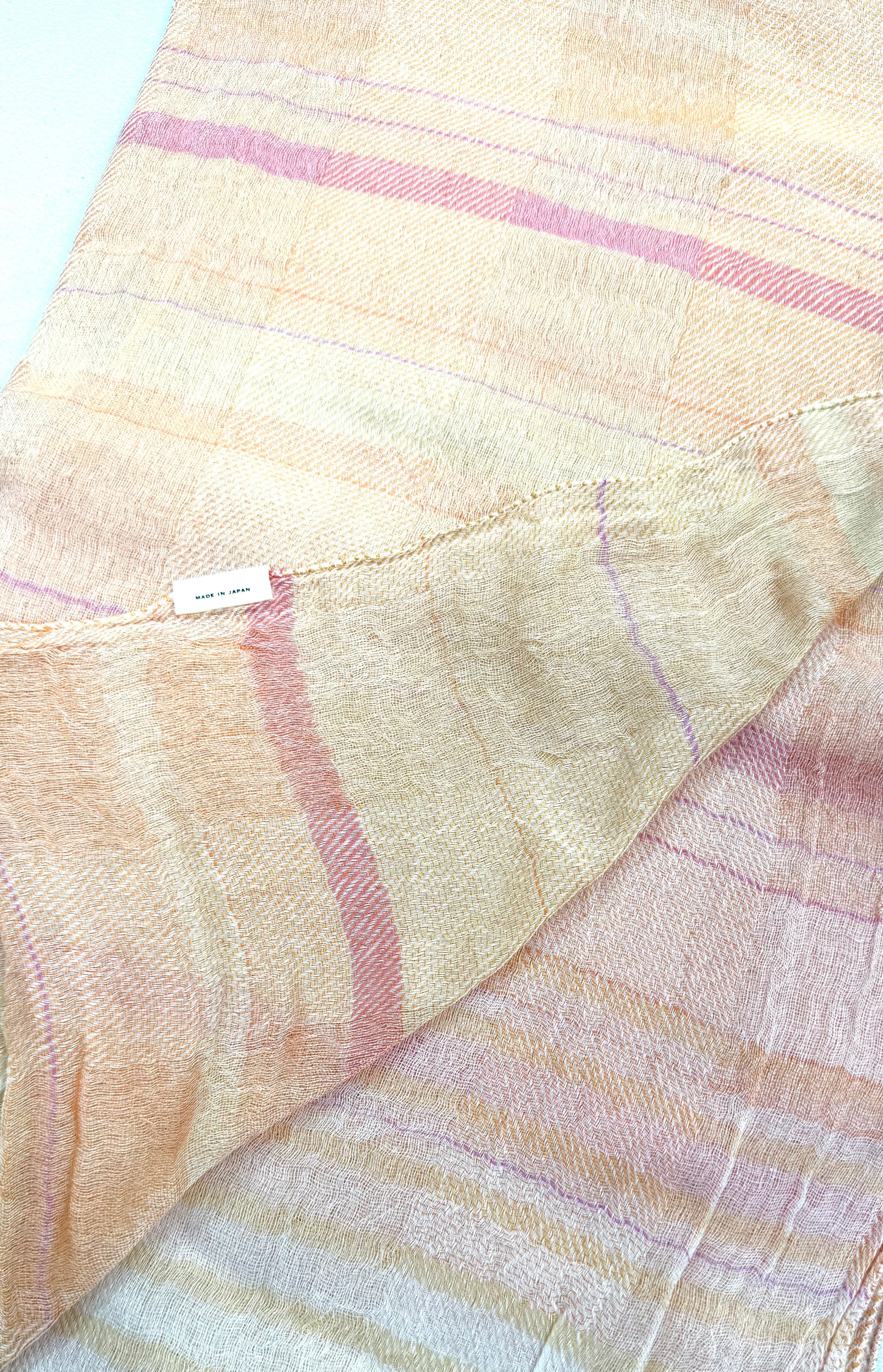 糸の段階でいろいろな色に染め、その糸から織り上げた織物です。水がとても綺麗だからこそ出来ます。