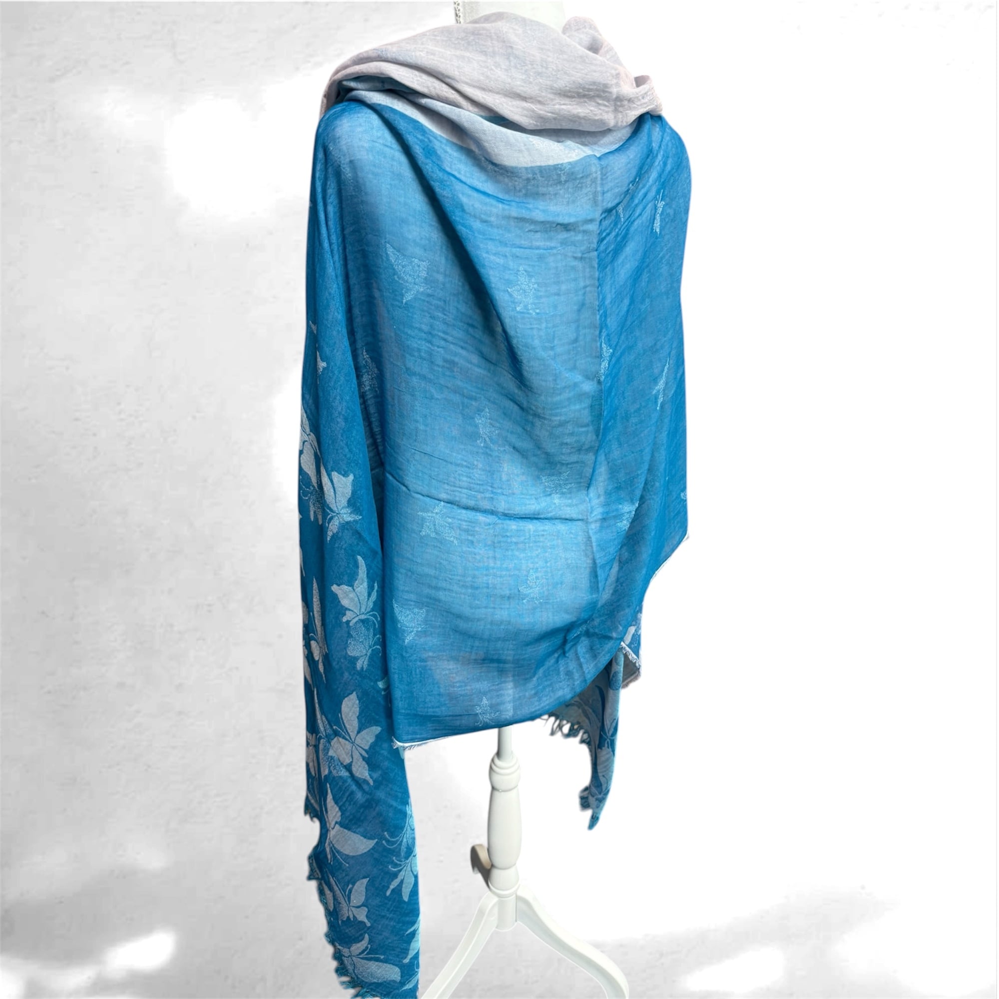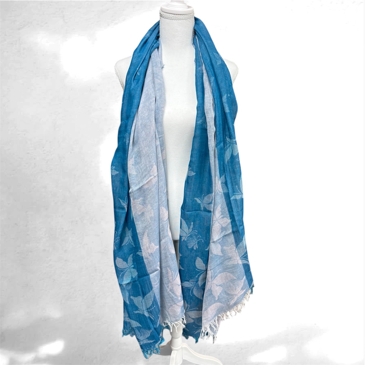 綿100%大判ストール バタフライ柄